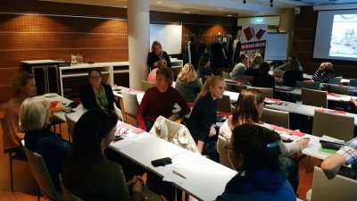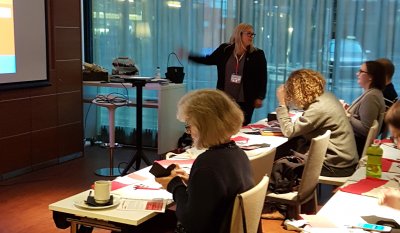 Du är viktig, så inleder Pamela Leka, ordförande för Esbo-Grankulla Lärarförening, utbildningsträffen för skolombuden i huvudstadsregionen. Under år 2018 och 2019 ordnar FSL regionala kurser för alla runt 300 skolombud ute på fältet.