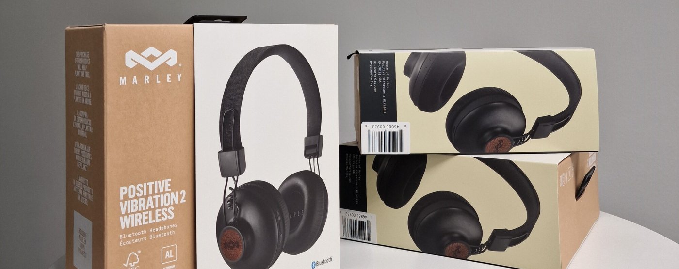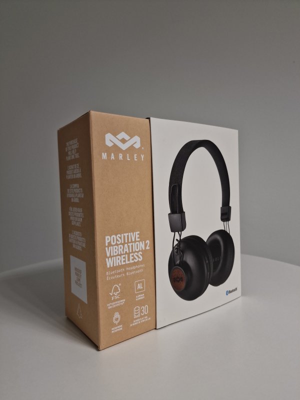 Hörlurarna av märket The House of Marley är av modellen Positive Vibration 2 Wireless, färg svart. Hörlurarna är kompatibla med både IOS och Android, har en inbyggd mikrofon för samtal och uppladdningsbart batteri som håller upp till 12 h. Hörlurarna är tillverkade i FSC-certifierat trä, återvinningsbart aluminium och levereras i en 100% återvinningsbar förpackning.