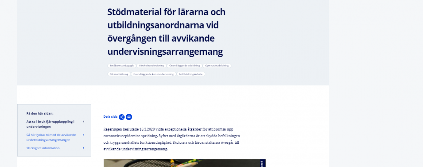 Utbildningsstyrelsen har publicerat de första direktiven för lärarna och utbildningsanordnarna vid övergången till avvikande undervisningsarrangemang. Det här är ett stödmaterial med 11 frågor och svar. Onsdagen den 18 mars publicerar man ett mer omfattande infopaket.