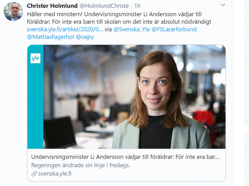 FSL instämmer i Anderssons vädjan. Ni som har barn i åk 1–3 och kan hålla barnen hemma, gör det!