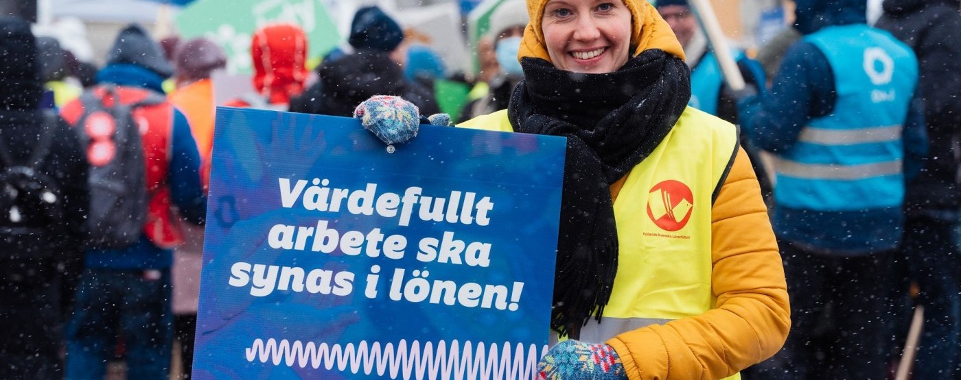 Tisdagen den 5 april samlades en stor skara kommunalt anställda på Senatstorget i Helsingfors för att demonstrera för rättvisa löner. En busslast med lärare kom också från FSL:s förtroendemannautbildning i Tammerfors. OAJ intervjuade FSL:aren Jessica Krohn, FOSU:s huvudförtroendeman i Jakobstad.