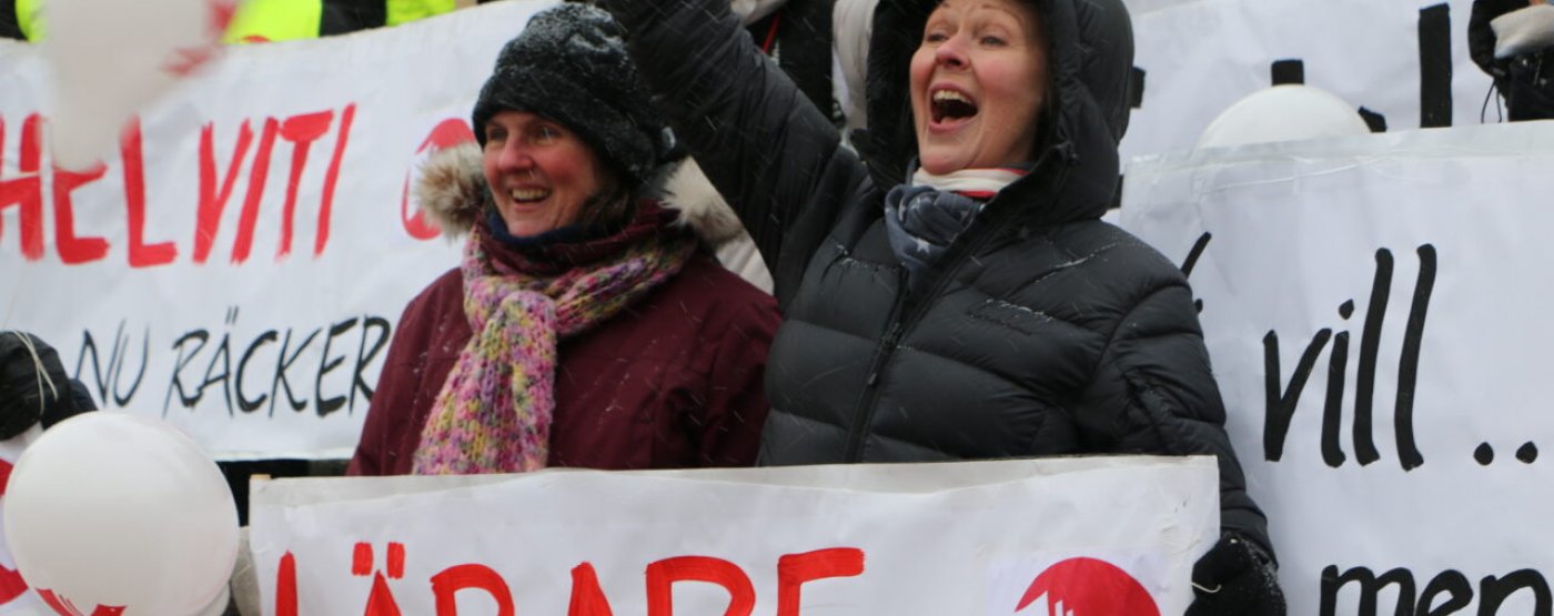 Vädergudarna var inte på lärarnas sida när man samlades till en manifestation på Senatstorget i Helsingfors. Men varken snålblåsten eller det snöblandade regnet hindrade dem från att föra fram sitt budskap. Signalerna är tydliga. Lärarna har fått nog. Det är vår tur nu, säger FSL:s ordförande Inger Damlin. Läs mer i tidningen Läraren.