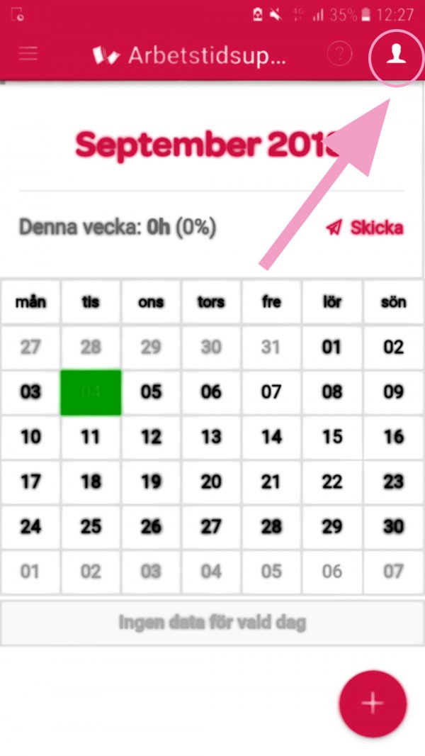 Du hittar inloggningsfunktionen genom att klicka på "gubben" uppe till höger när du är inne i appen.