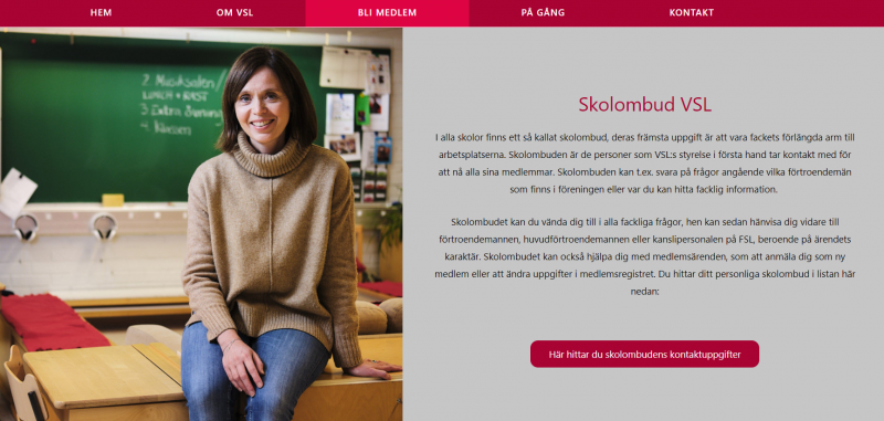 Vasa svenska lärarförening är en av FSL:s största lokalföreningar med över 350 medlemmar. Föreningen har nyligen lanserat en egen webbsida. Vi vill att människor som söker Vasa svenska lärarförening på nätet ska hitta den info de behöver och komma direkt till vår sida, säger lärarföreningens ordförande Jenny Teir.