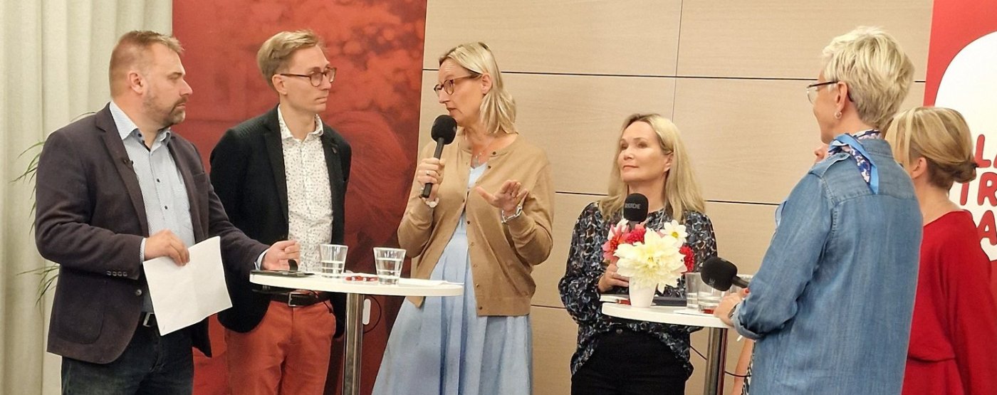 I panelen: Inger Damlin, förbundsordförande för FSL, Mirjam Kalland, professor och barnpsykolog, Linda Mannila, docent i datavetenskap, Esbjörn Hägerstedt, rektor för Karis-Billnäs gymnasium i Raseborg, Micaela Romantschuk, verksamhetsledare för Hem och Skola samt Ann-Sofi Loo, ämneslärare i åk 7–9 för att diskutera resultaten och hur en skolvardag med mobiltelefoner borde se ut i fortsättningen. Tidningen Lärarens chefredaktör Mattias Fagerholm leder diskussionen.