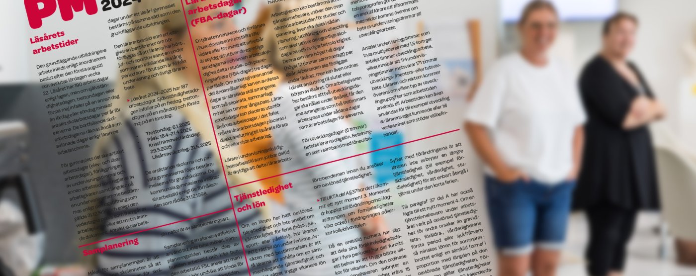 PM:et hittar du som bilaga i tidningen Lärarens sista nummer innan sommaravbrottet. Vill du laddar ner PM:et kan du göra det här: PM för läsåret 2024-2025